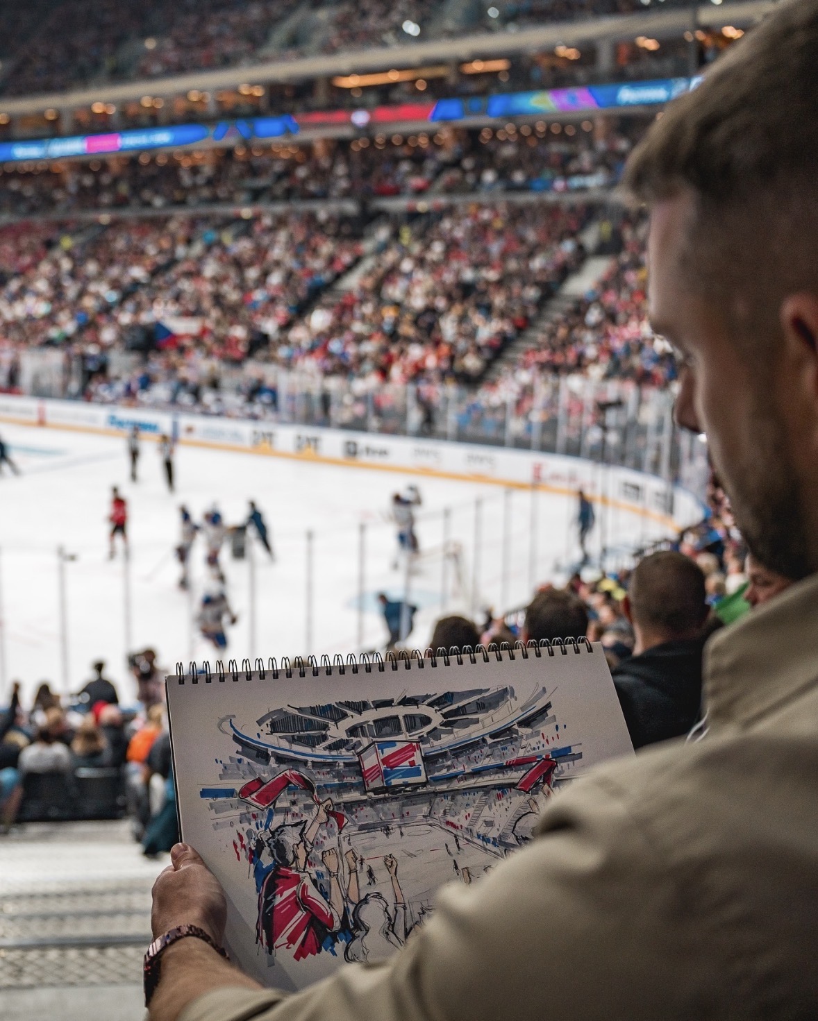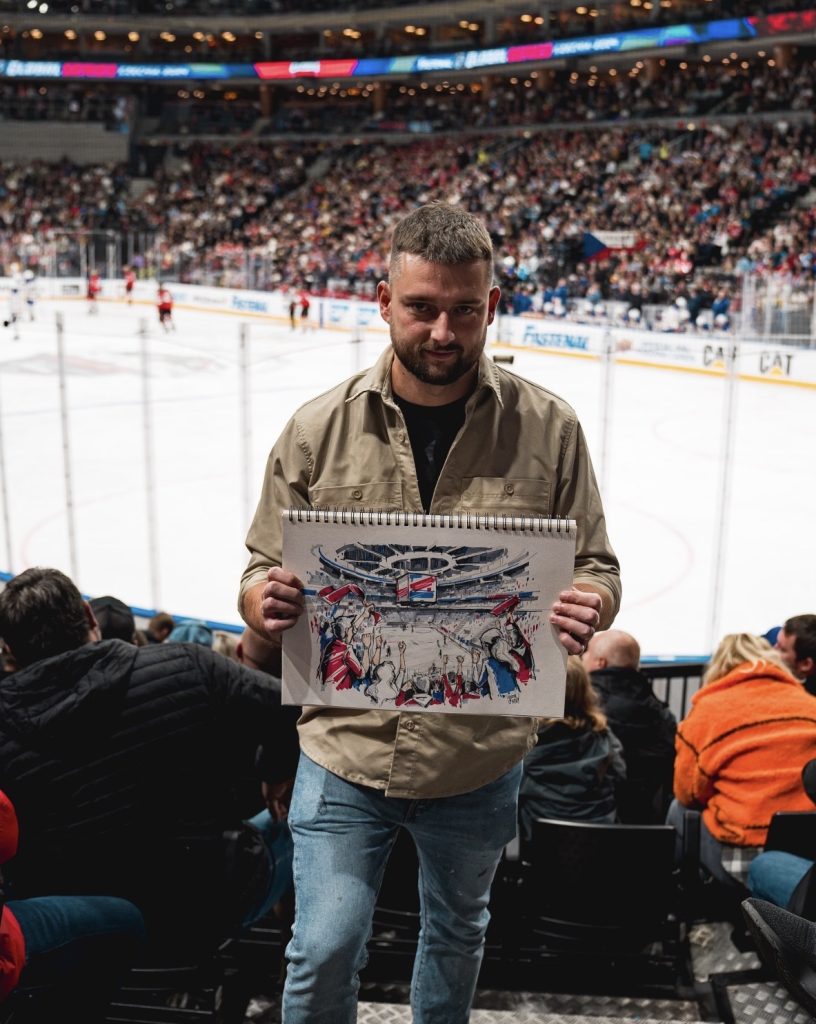 V roce 2024 jsem byl agenturou IMG pozván kreslit živě během zápasu NHL New Jersey Devils vs. Buffalo Sabres.